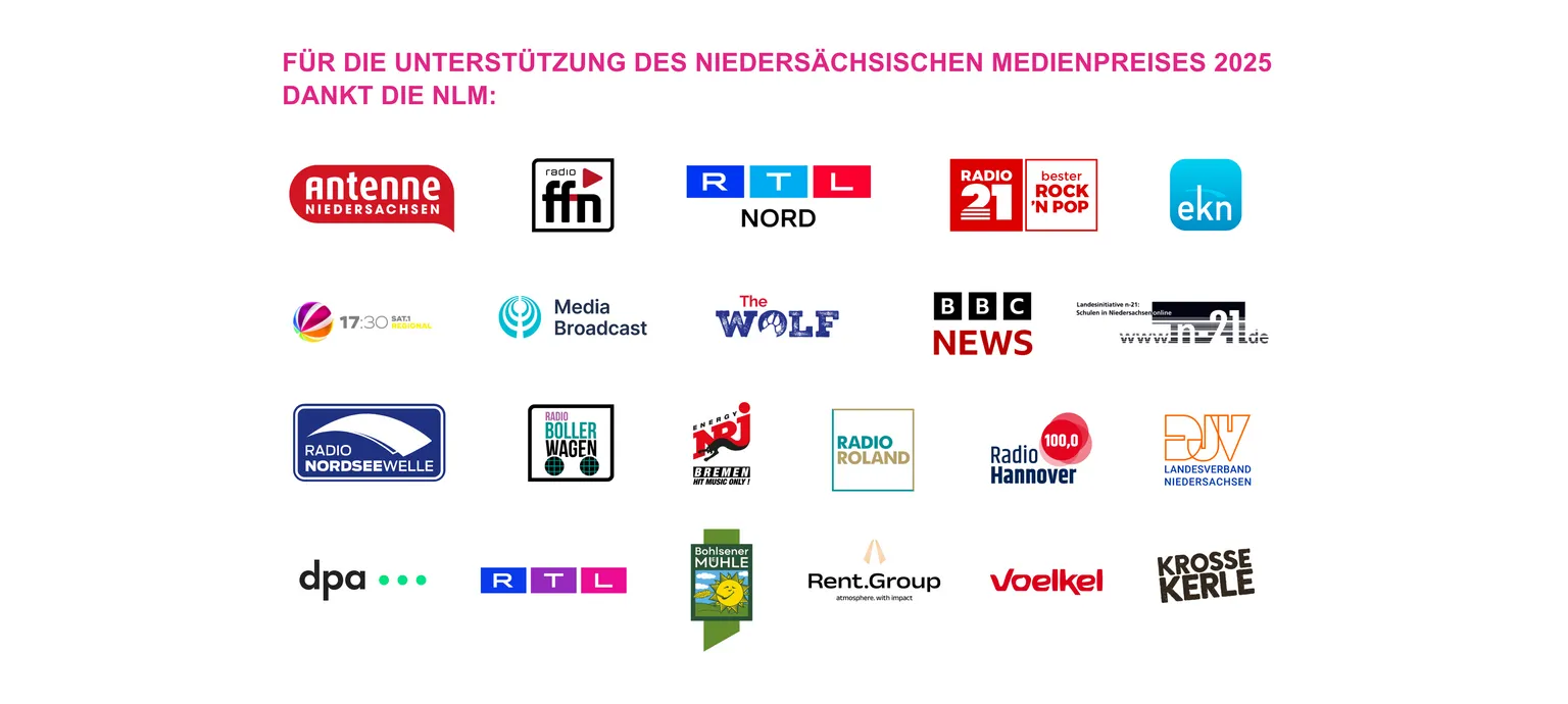 Die NLM verwendet diese von Ihnen freiwillig übermittelten personenbezogenen Daten ausschließlich zum Zweck der Anmeldung zum Niedersächsischen Medienpreis. Rechtsgrundlage hierfür ist Art. 6 Abs. 1 S. 1 lit. a) DS-GVO. Bitte beachten Sie, dass die Übermittlung der Daten im Internet (z. B. bei der Kommunikation per E-Mail) Sicherheitslücken aufweisen kann. Ein lückenloser Schutz der Daten vor dem Zugriff durch Dritte ist nicht möglich.
